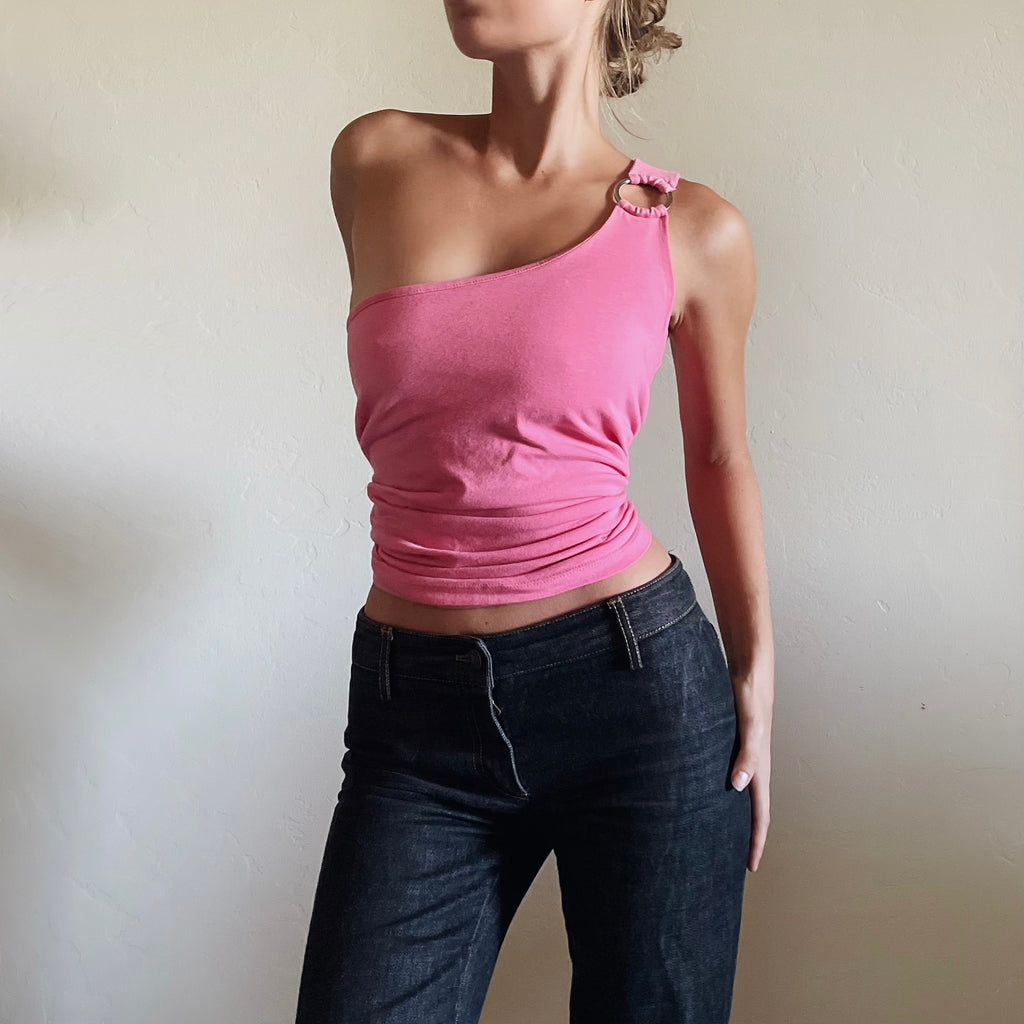Chic, fun, flirty, ready to be paired with your favorite vintage denim/trousers. By VS’s clothing Moda line. Has a built in bra, that flatters the chest. Causal wear from time, in great vintage condition. Might be best for a S/M, but please see all measurements below to ensure desired fit.