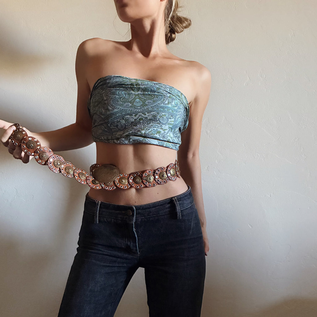 Gorgeous vintage 100% silk scarf. Beautiful patterns and tone to this scarf. Large so can be worn in numerous ways. So many ways to get creative, wrap around your head, neck, wear it as a top, wear it as a sarong, a shawl etc… Light fraying on edges from time, Great vintage condition. Measurements below.